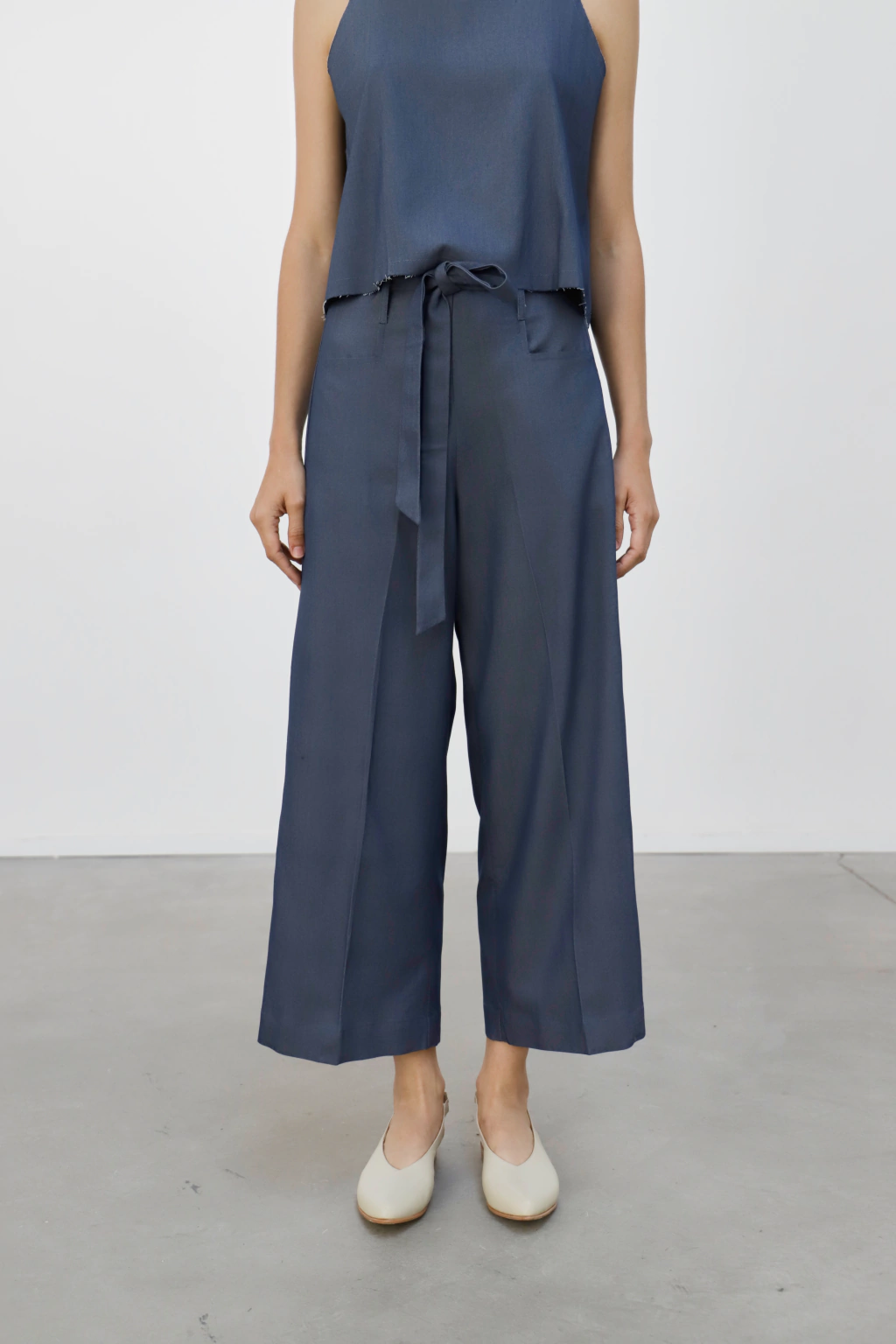 Descripción: Pantalón SELENA DENIM cintura alta, cierre por delante invisible, bolsillos laterales con lazo, largo al tobillo. Confeccionado en tela denim camisero liviano, suave, con elastano. Combina este pantalón con el top SELENA o top ANTUAN, también podes usarlo con algún top básico de nuestra línea.